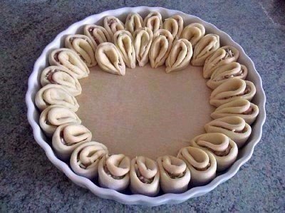 7. Уложить заготовки плотно друг к другу в форму (диаметром 28 см).